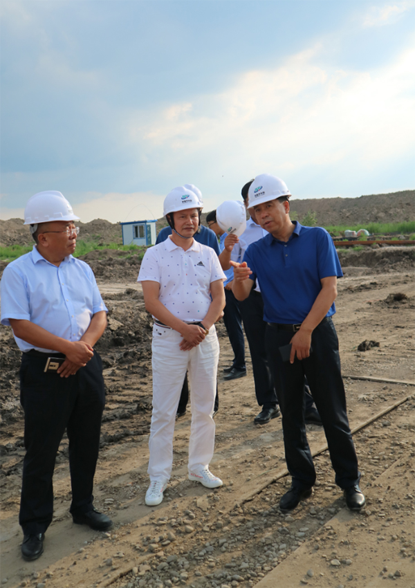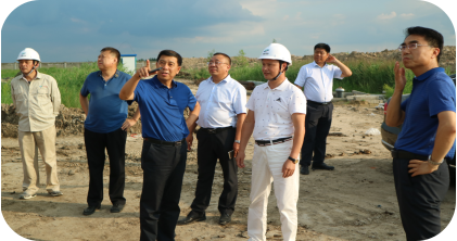 2018年8月8日下午16:30分,安達市市長熬丙千、市政府副處級領導劉清亮及開發區主任李洪軍等一行來到黑龍江京盛華環??萍加邢薰尽拔kU廢物集中處置及資源化”項目施工現場進行視察指導工作。公司總經理陳子清協同項目部、生產部、安環部相關部門負責人一同陪同參觀并匯報工作。