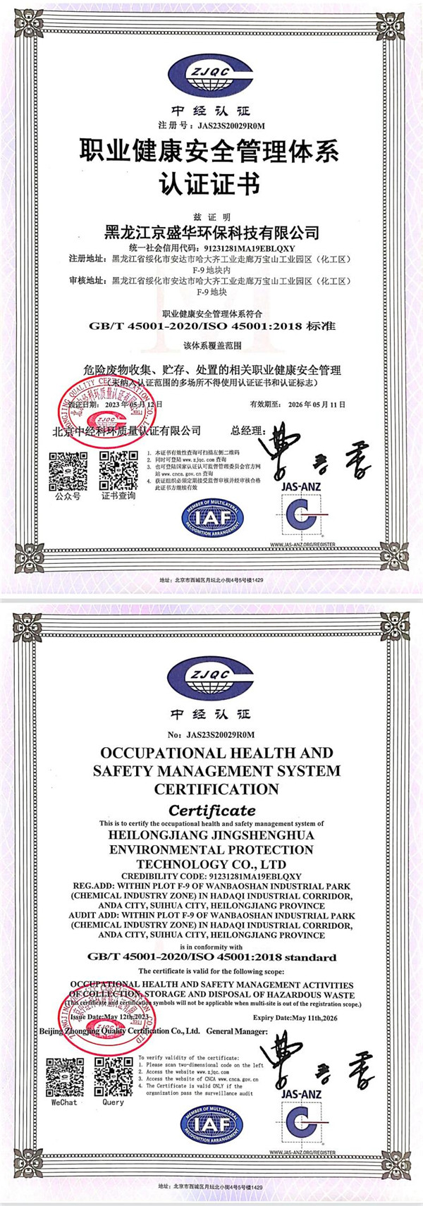 黑龍江京盛華環(huán)保科技有限公司固體廢物污染環(huán)境防治信息公示