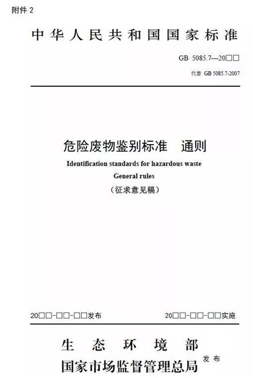 《危險(xiǎn)廢物鑒別標(biāo)準(zhǔn) 通則》(征求意見稿)